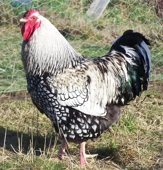 If you’re starting a breeding pair or simply want a gorgeous bird to watch over your hens, a Silver Laced Wyandotte rooster is a perfect choice.